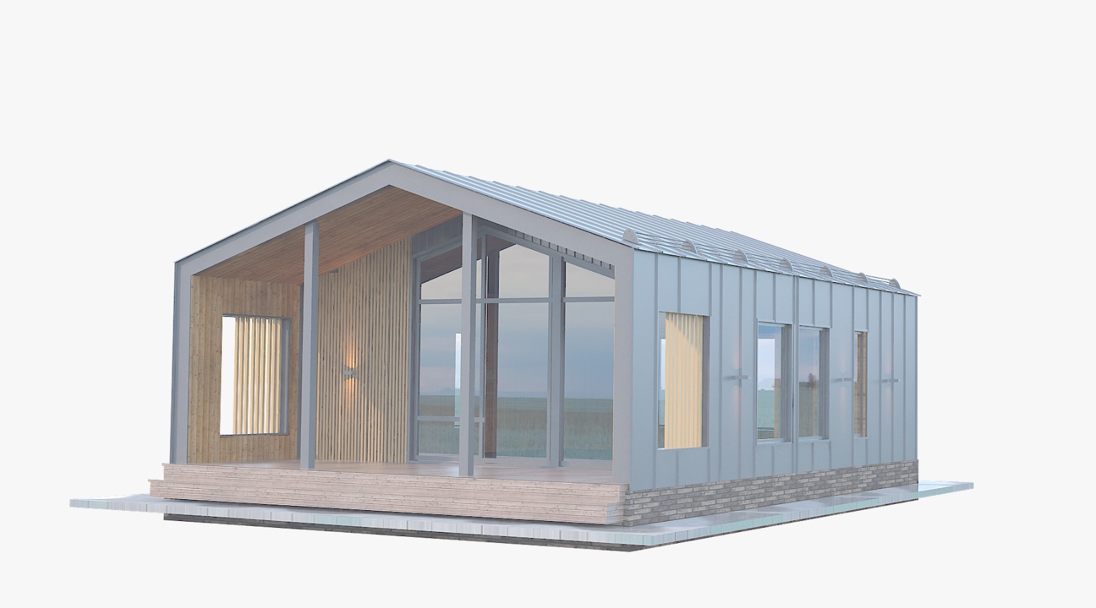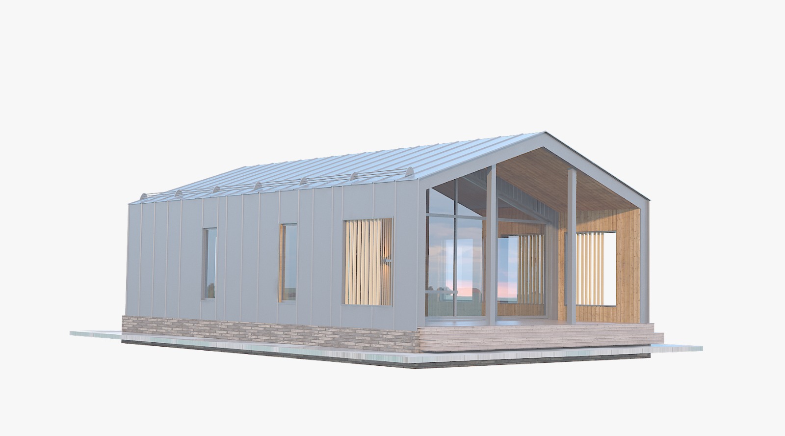 Площадь составляет 96 м2. Сразу на входе – просторная кухня-гостиная, которую можно удобно зонировать. Три изолированные спальни, обустроенный санузел. Для организации хранения вещей предусмотрена антресоль, на которую ведет компактная и прочная 10-ступенчатая лестница. Большая терраса на входе, где можно обустроить удобную зону отдыха.