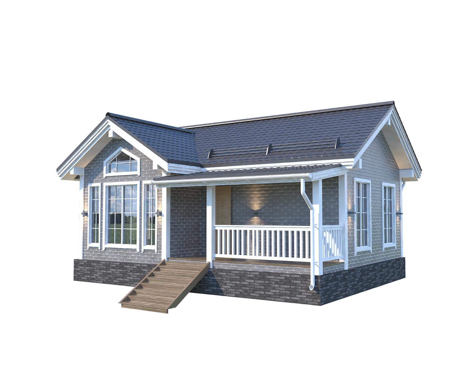 Уютный одноэтажный коттедж «Заря 7,5х8» – красивый и уютный фахверковый дом площадью 57,6 м2 с двускатной крышей. Каркасная конструкция дома обеспечивает быструю скорость возведения наряду с прочностью и надежностью.