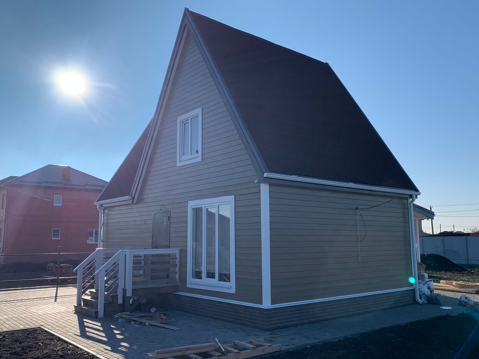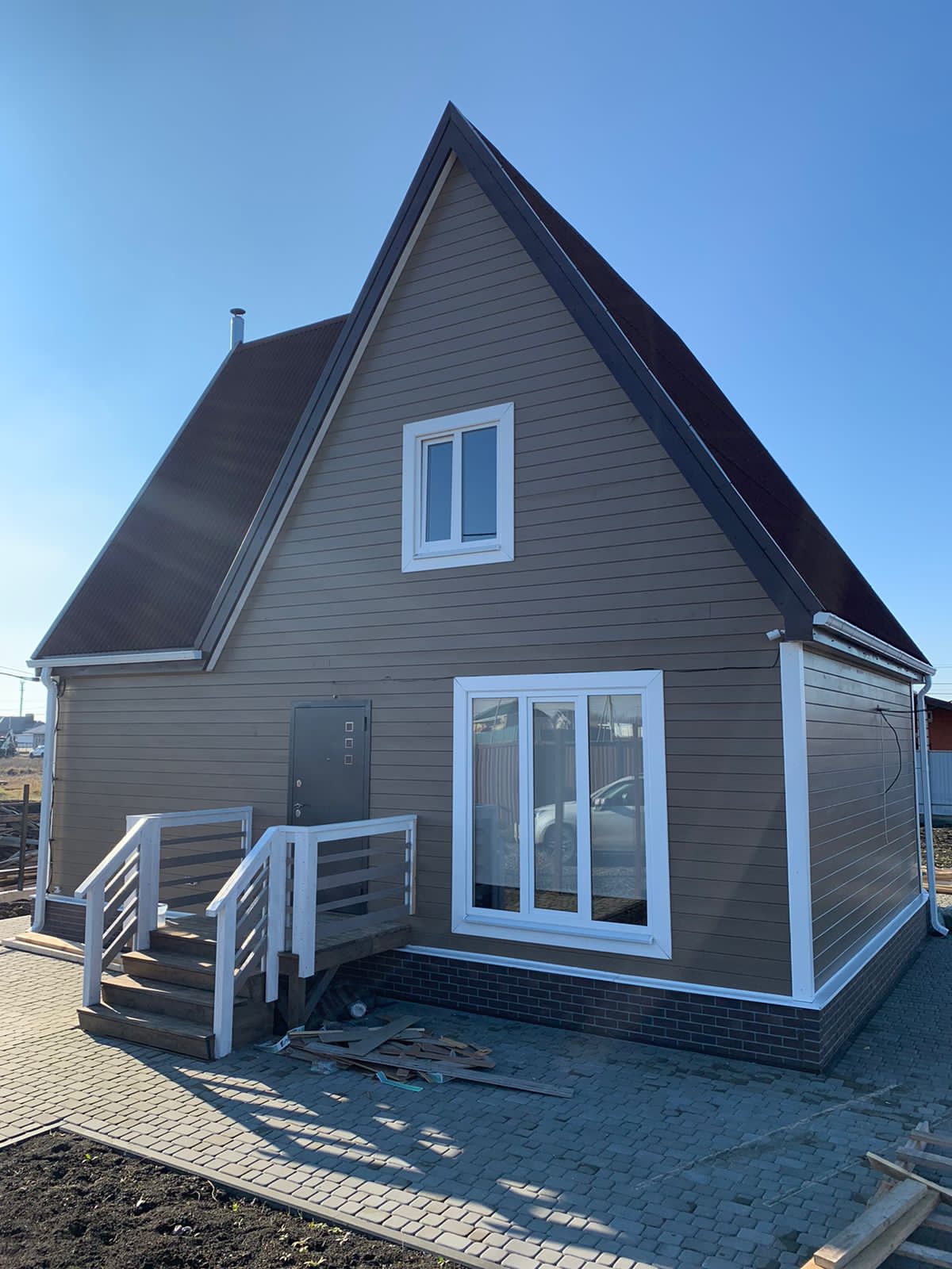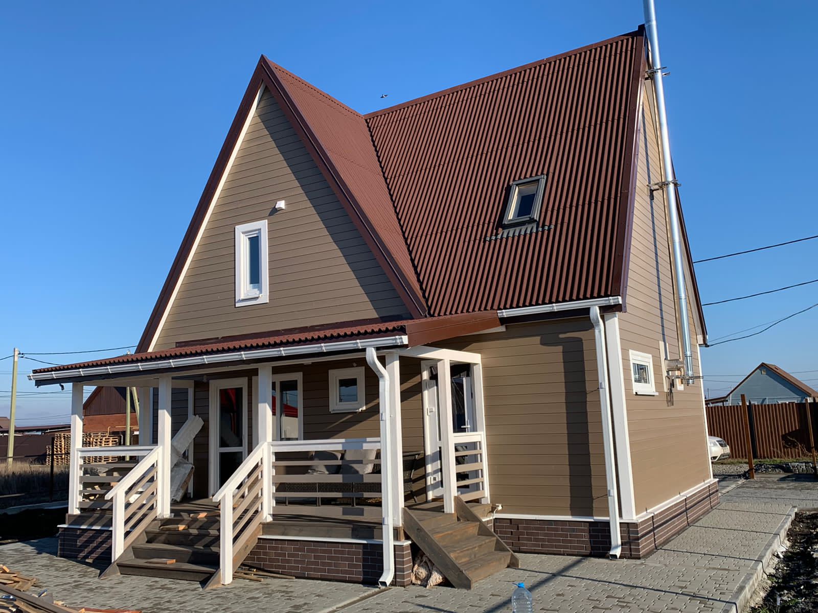 Дом строился по заказу нашего клиента. Выполненные работы производились по договору на основании согласованной сметы. Сроки строительства составили 14 дней Бригада строителей - 6 человек + прораб Материалы заказывались по самым выгодным ценам непосредственно у производителей В результате получился великолепный каркасный дом в два этажа. Заказчик доволен и уже переехал жить круглогодично