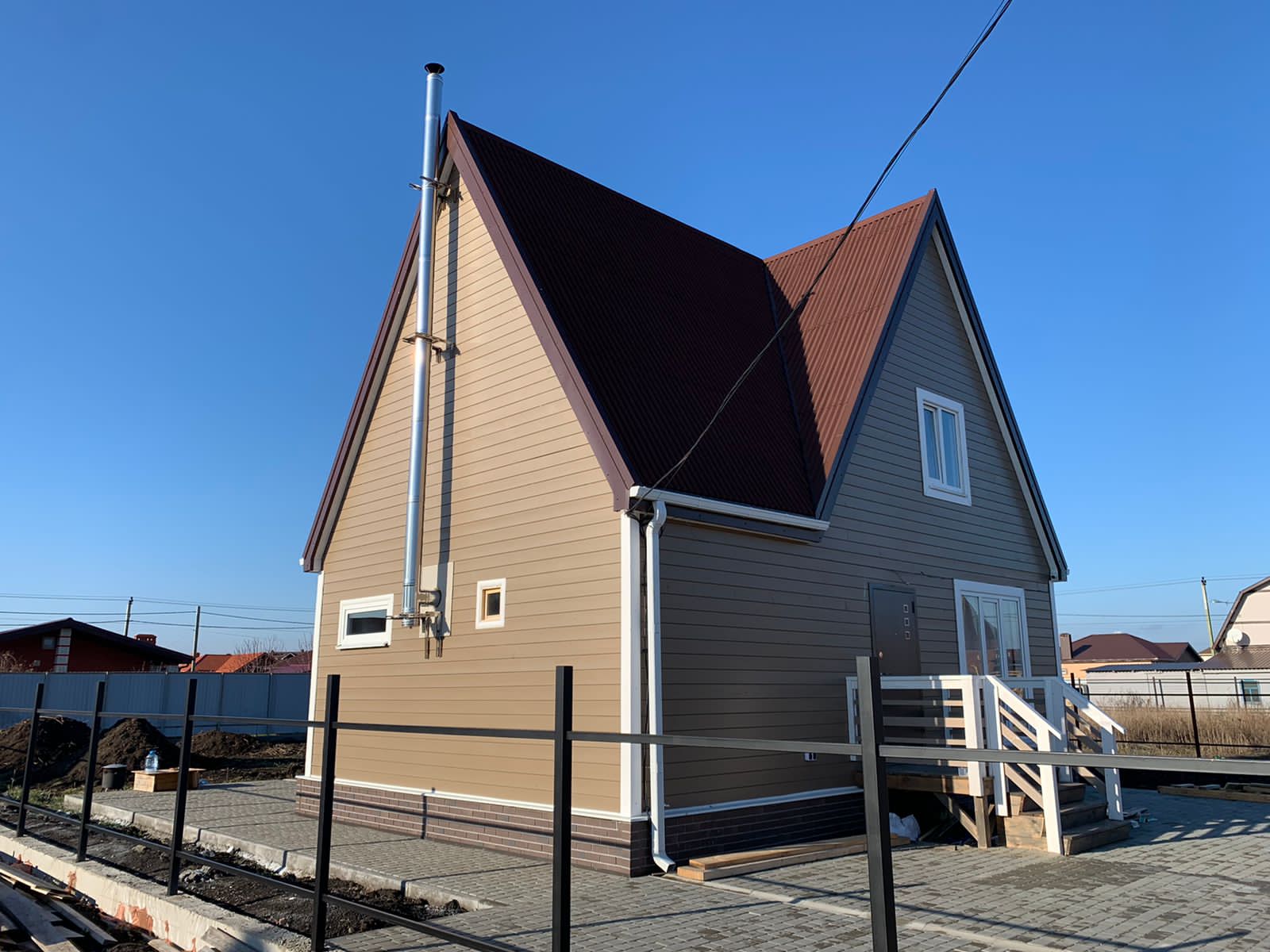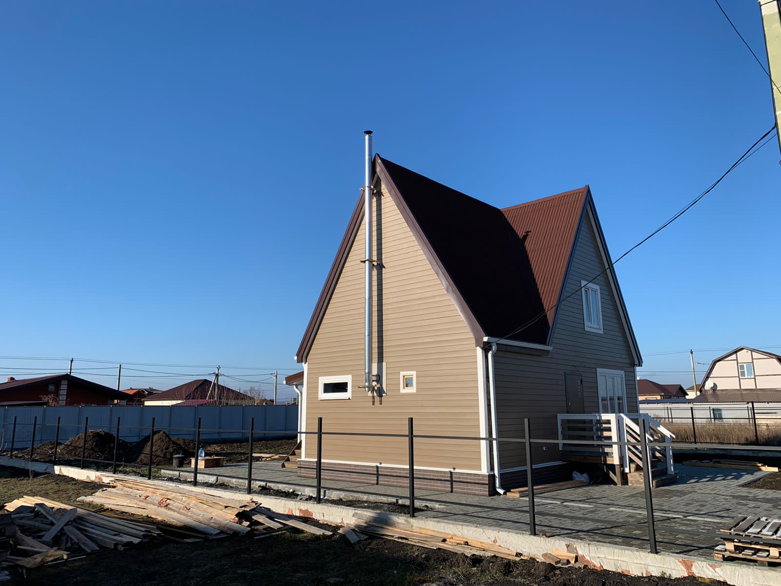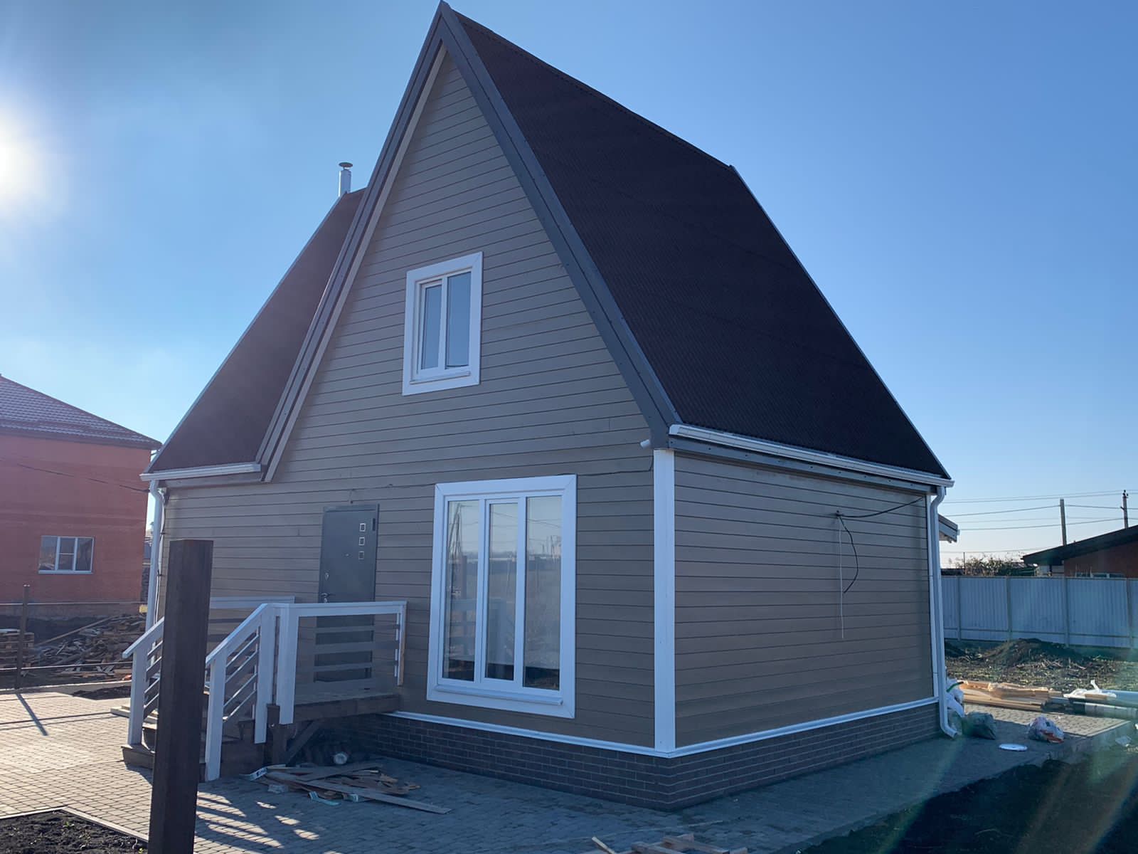 Дом строился по заказу нашего клиента. Выполненные работы производились по договору на основании согласованной сметы. Сроки строительства составили 14 дней Бригада строителей - 6 человек + прораб Материалы заказывались по самым выгодным ценам непосредственно у производителей В результате получился великолепный каркасный дом в два этажа. Заказчик доволен и уже переехал жить круглогодично